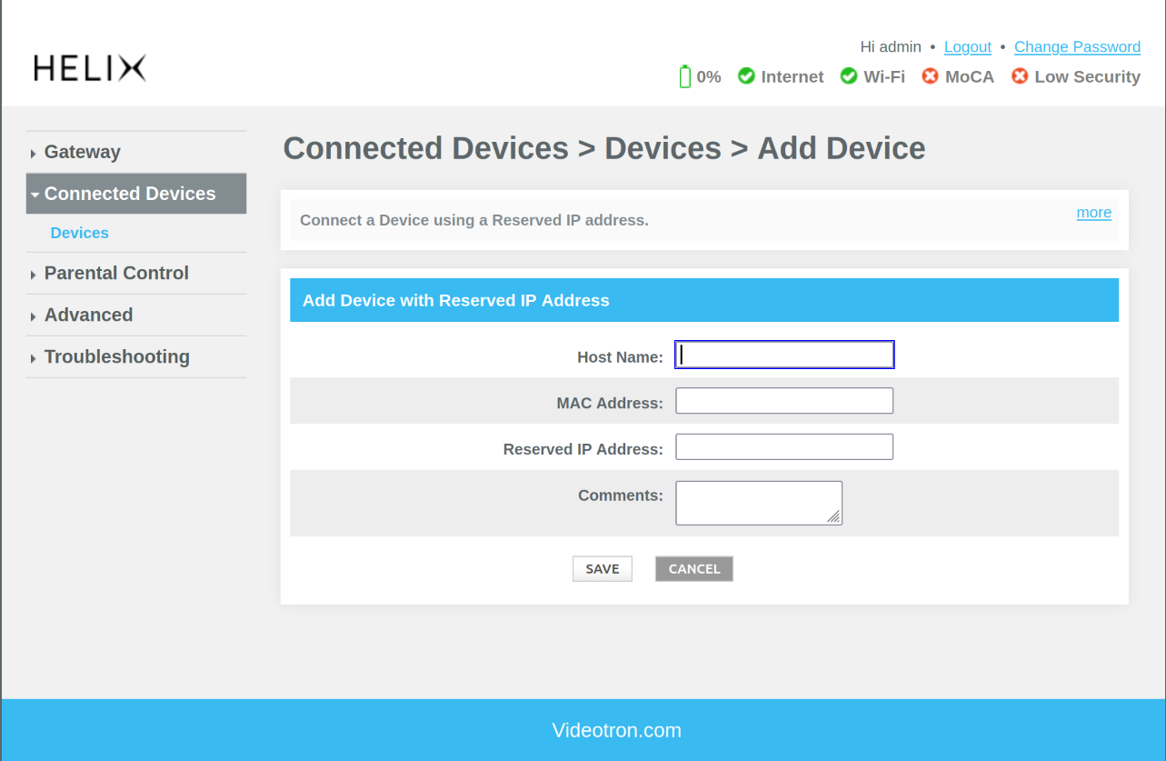 I use Videotron as my internet provider; more precisely, I use the Helix service. Therefore, I have a Helix Fi Gateway at home that I use to connect my devices to the internet, including a Raspberry Pi that hosts a Nextcloud service.